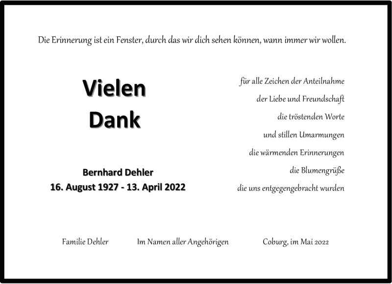 Bernhard Dehlergestorben am 13. April 2022