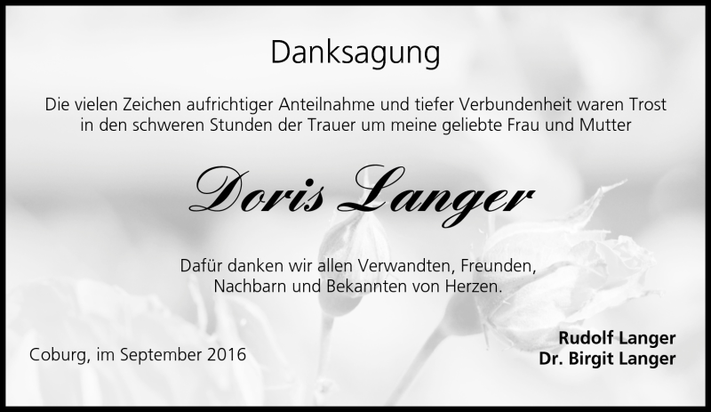Doris Langergestorben am 15. September 2016