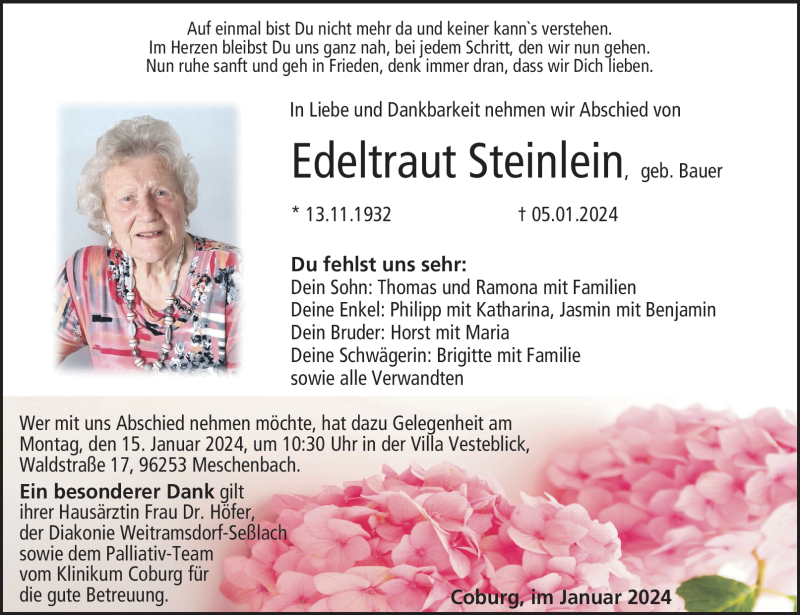 Edeltraut Steinleingestorben am 5. Januar 2024