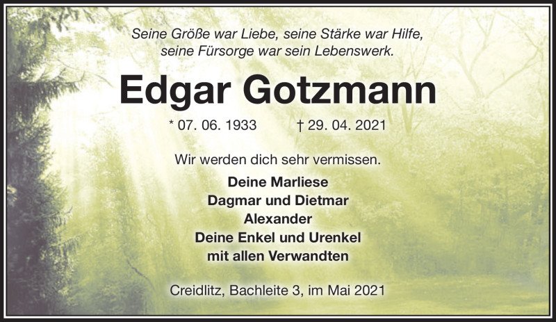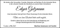 Edgar Gotzmann gestorben am 29. April 2021