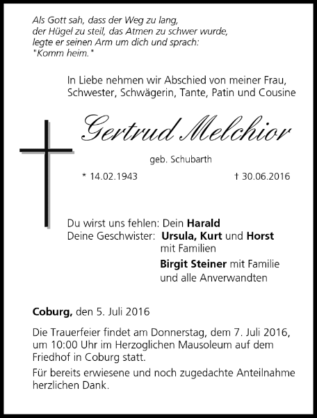 Gertrud Melchiorgestorben am 30. Juni 2016