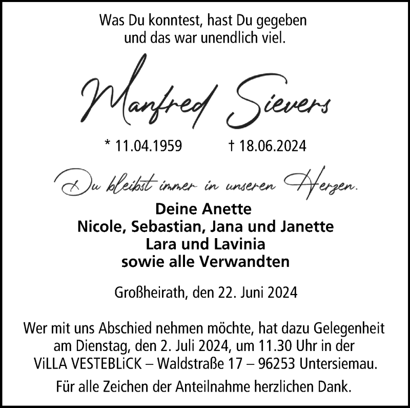 Sehr geehrte Familie Sievers,