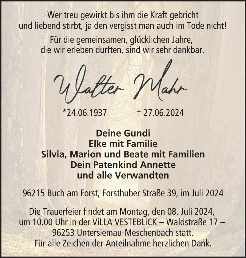 Walter Mahrgestorben am 27. Juni 2024
