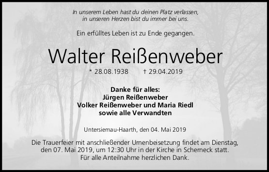 Walter Reißenwebergestorben am 29. April 2019