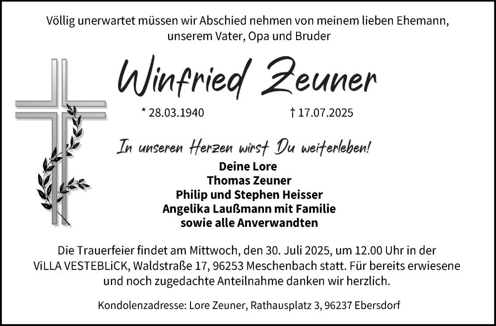 Winfried Zeunergestorben am 17. Juli 2025